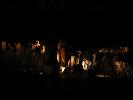 Darkness and natural light in the cavern. It would of course be pitch black without the lights they bring in.