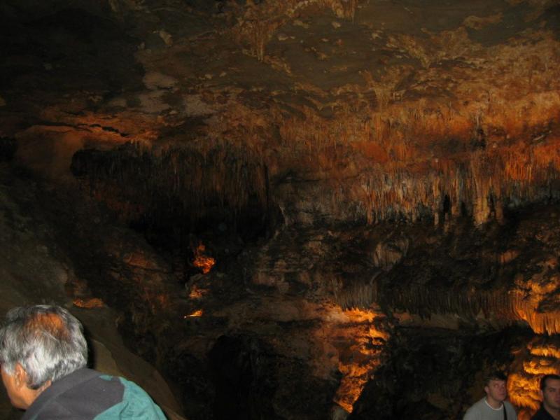 The ceiling of the cave is covered in calcium, salt, and rust.